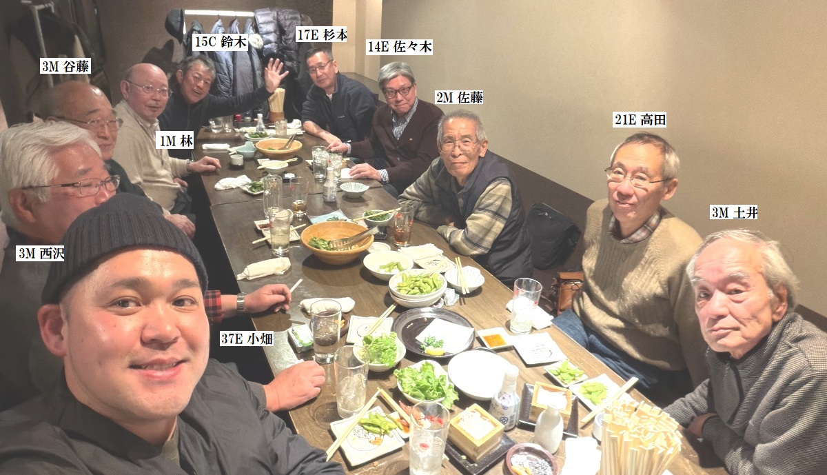 皆さん、お元気ですか? 今回の参加者は10名で、37E 小畑さんが初参加でした。 23J 山代さんのお店で有志が二次会を行ったそうです。 次回は2月14日です。 多数の参加をお待ちしております。